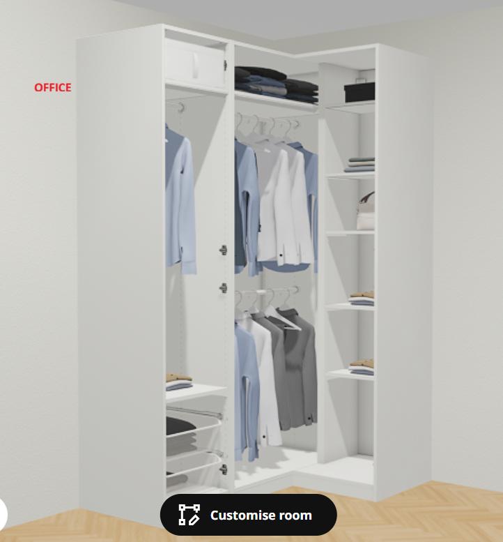 I have five wardrobes over four rooms that I'd like assembled. One is a corner unit. 1) 75cm x 236 2) 100cm x 236 3) 100cm x 236 4)100cm x 236 w/ corner unit 5) Platsa with four units. All hinged doors. Three will have Ikea lighting with power available locally. I'd like them fitted to the walls but I don't want to damage the baseboards so they will have to be altered to fit over the baseboards.