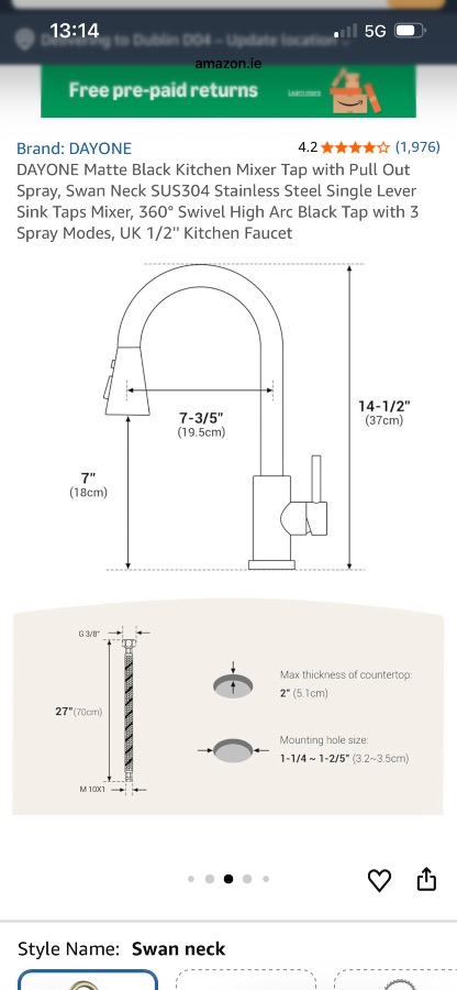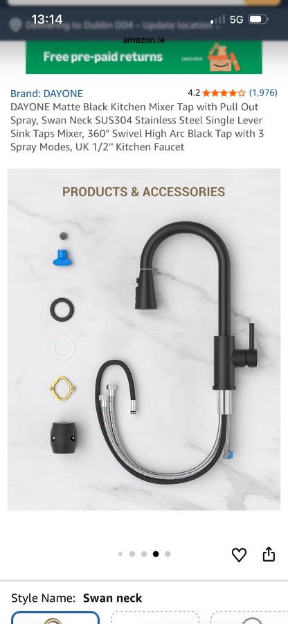 Change kitchen sink tap. Tap already purchased it’s a Dayone Kitchen Mixer tap.