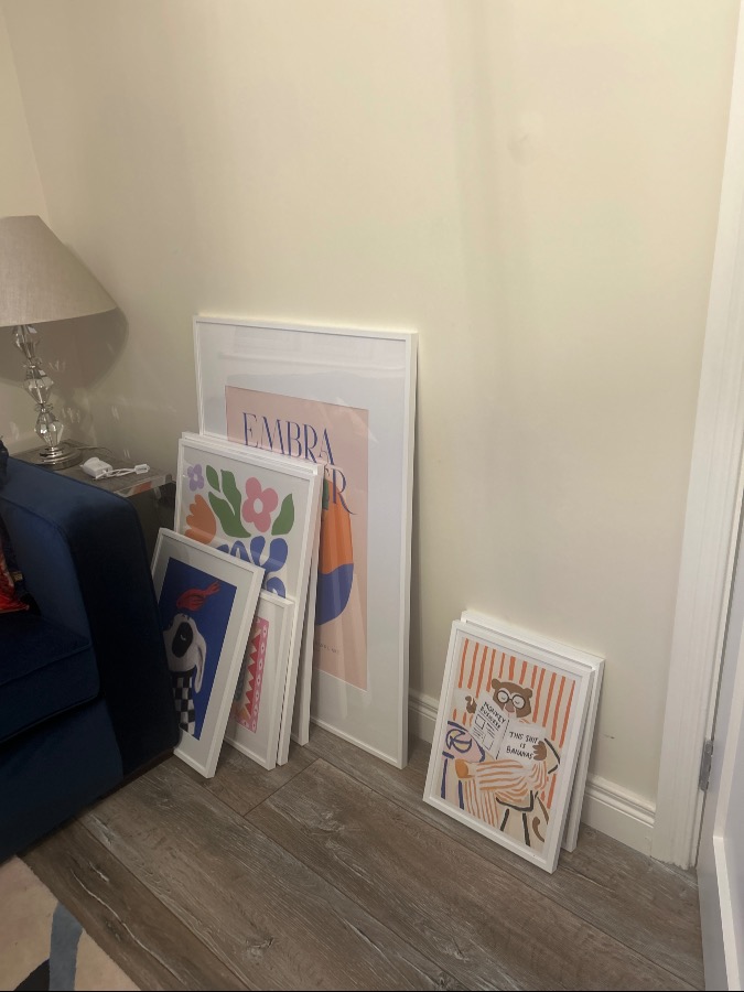 I want to hang some pictures to create a gallery wall and also have a shower door sealed. Also have a bin track fixed