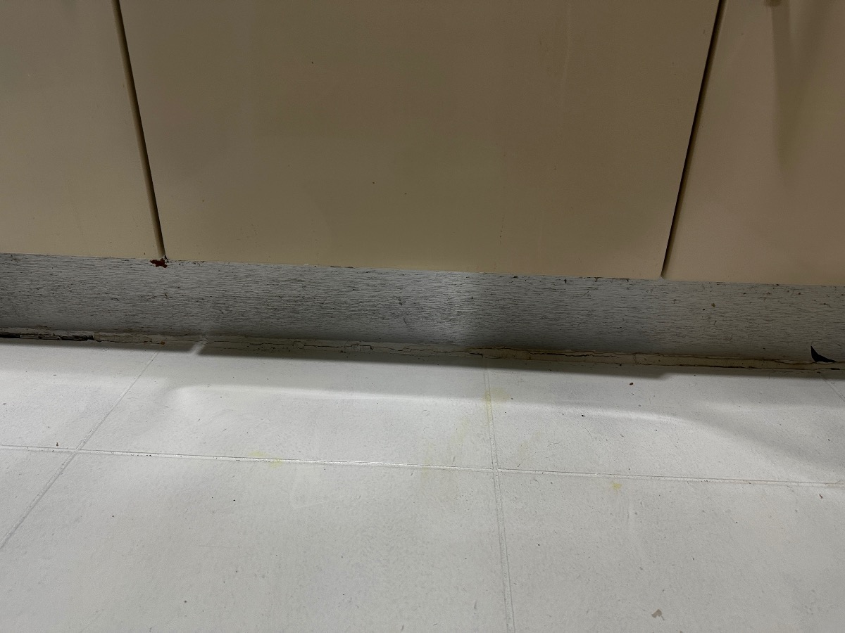 Kitchen dishwasher get struck on the base wood need to shave them off & seal , also to fill the gap on the kitchen counter top