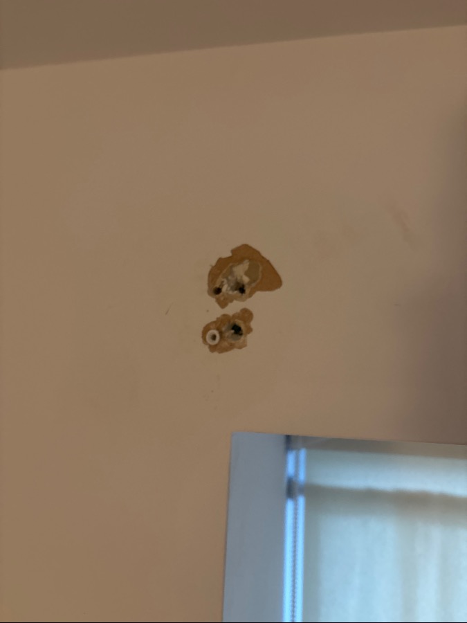 The bracket from curtain came out of the drywall, looking for someone to do a small patch job and re install the brackets