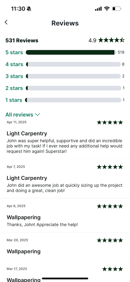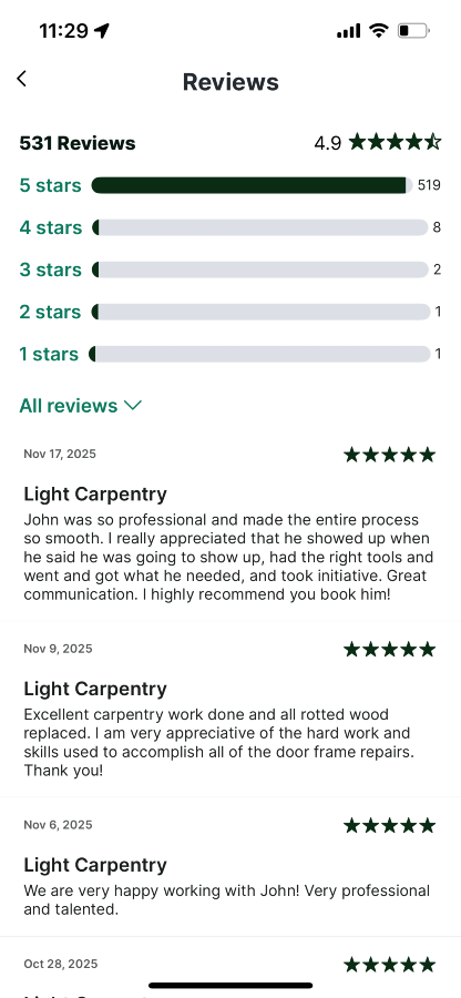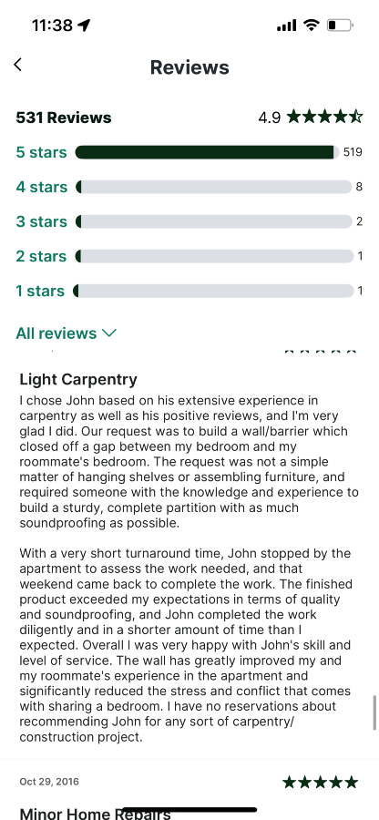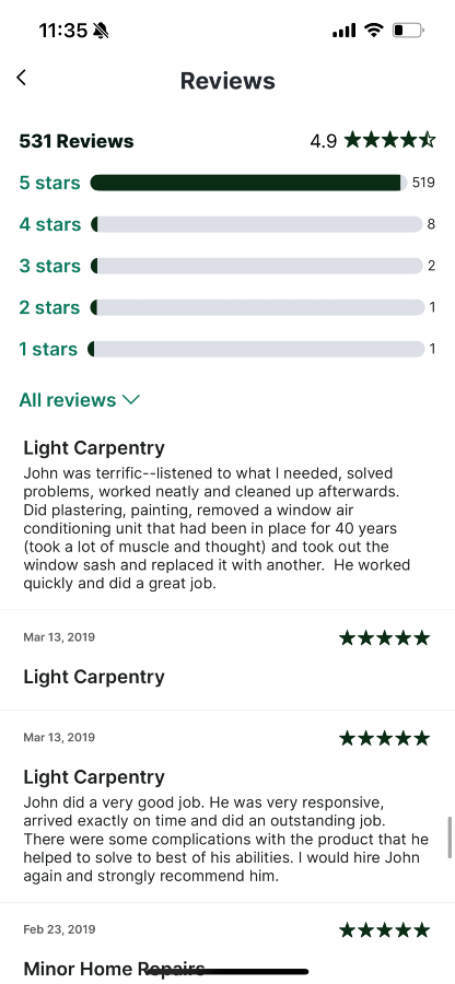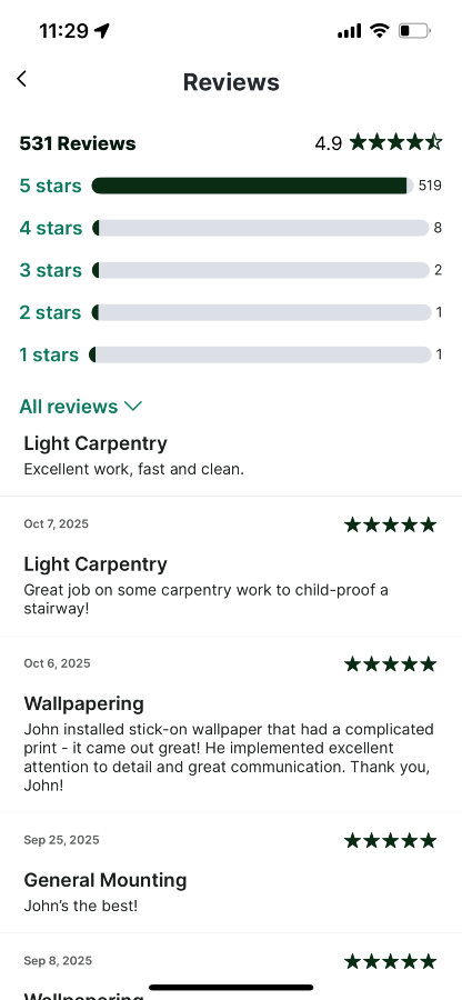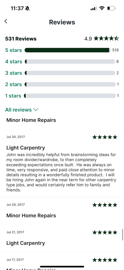 I’m John and I have many years experience with all sorts of handyman and construction work. I just moved back from the US a few weeks ago and I look forward to establishing myself in Dublin and the surrounding areas.