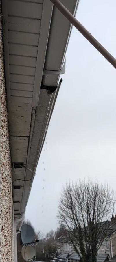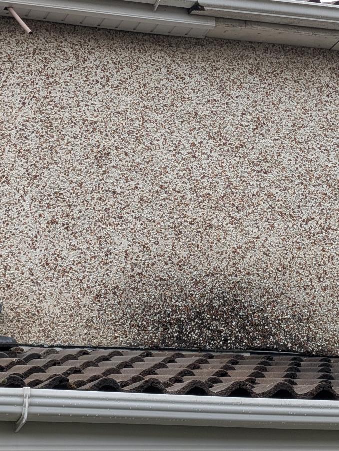 I have two tasks for the semi-deatched house: 1. Can you clean the immediate area in the gutter and apply a waterproof sealant or patch to fix the small hole/split. This is a targeted repair, not a gutter replacement. 2. The black stain on the pebble dash directly below the leaking gutter needs cleaning. Important: this shouldn't be pressure washed because of pebble stone, just soft-washing please. Thank you!