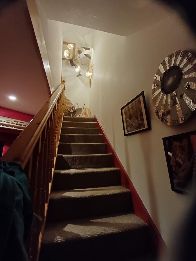 Wallpaper 1 wall on stairs and paint 2 coats on the other. Should only take 1-2 days.